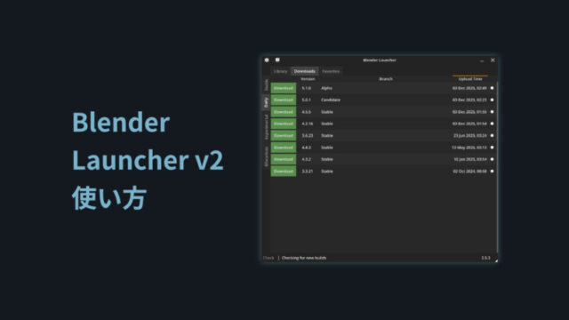 3DCG Blender Launcher v2の使い方 Blenderのバージョン管理に便利なツールで導入はGit Hubページからダウンロード。無料で入手可能。.blendファイルは手動で紐づける必要がある。また古いバージョンを使うと正しくBlenderが入らないことがあるので注意。 2025.12.03 3DCG