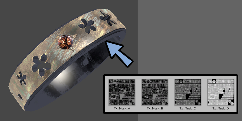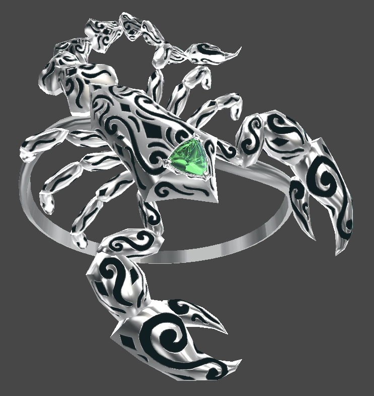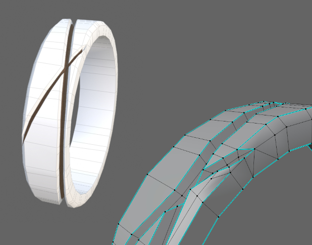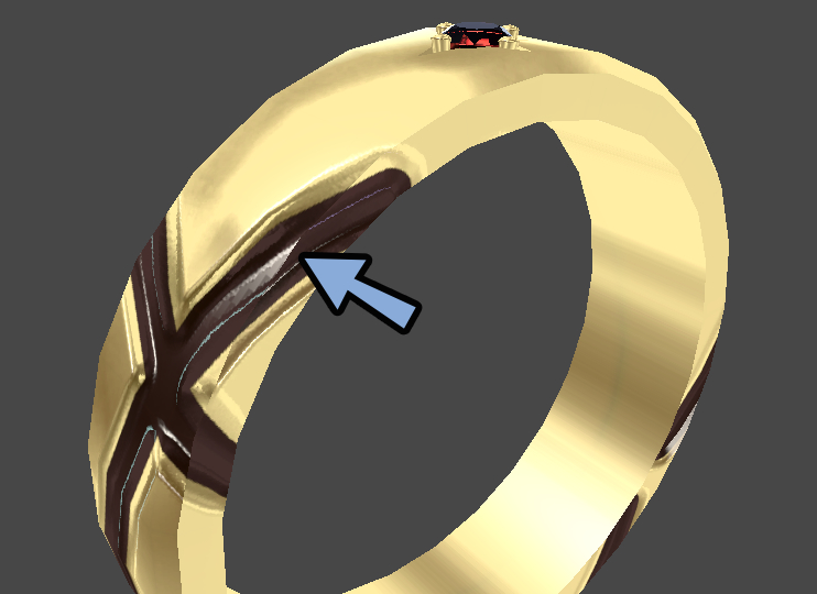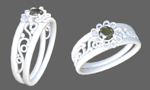 これらの技法を組み合わせると、こんな感じの指輪などが作れます。(3DCG)