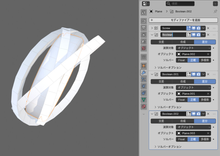 これを3DCGで再現するならV字状のスクリュー形状を複数用意。