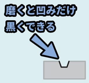 ・銀はいぶし銀にすると全体に黒くしたり、凹みを黒くできたりする
