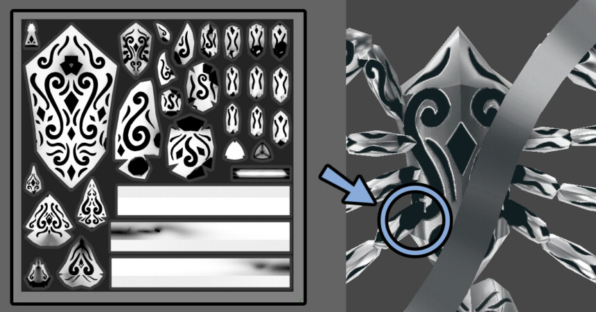 この凹凸は3DCGだと「ノーマルマップ」の描画で再現できそうです。