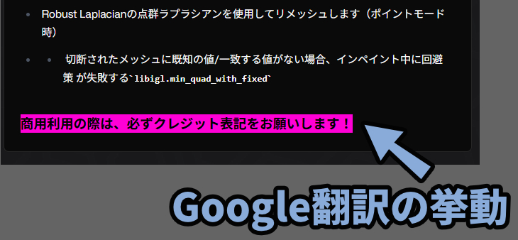 この一文は「商用利用の際は、必ずクレジット表記をお願いします!」と翻訳されます。