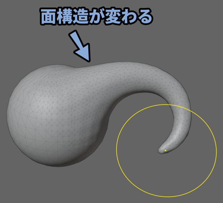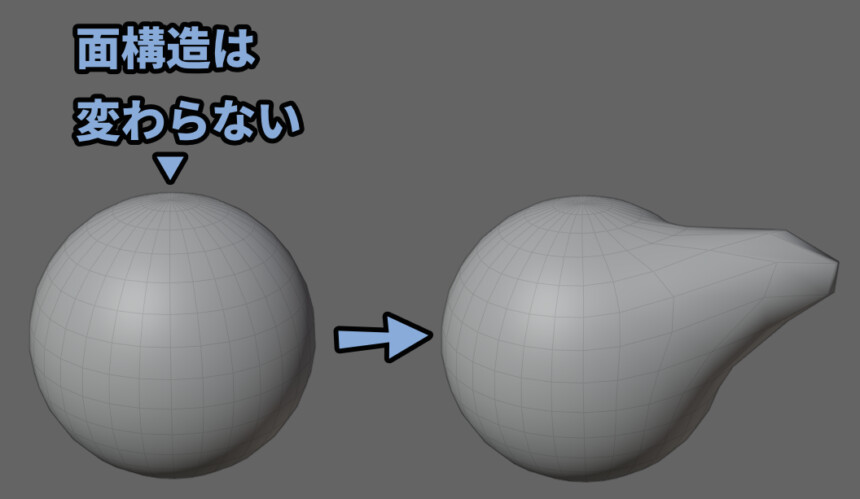 Blenderのスカルプトはデフォルトだと「面構造」は変わりません。