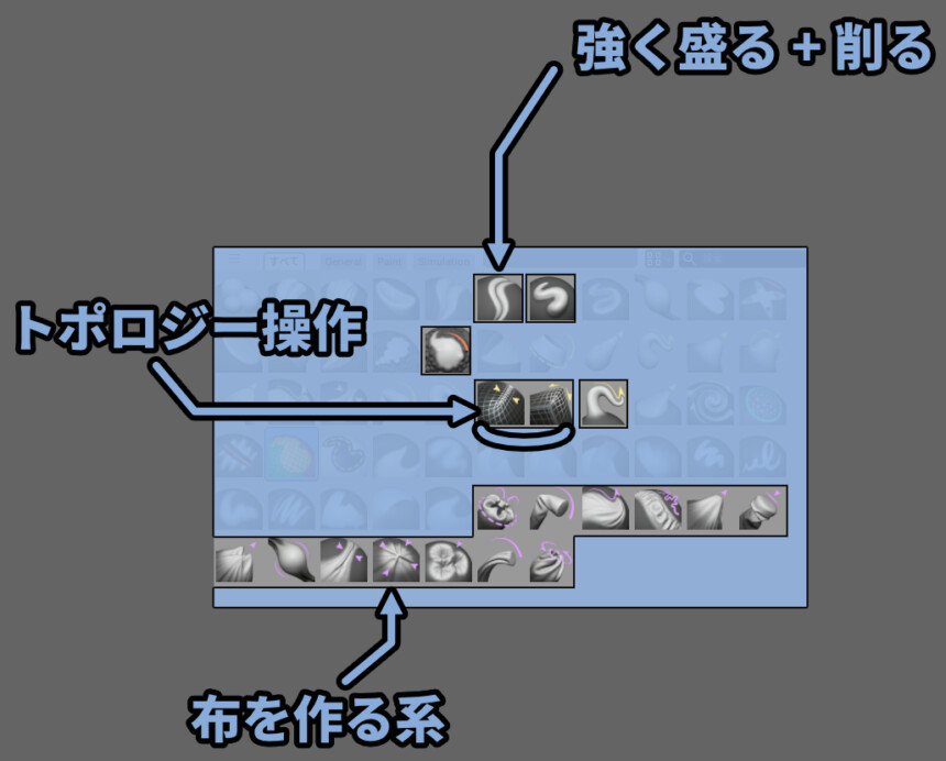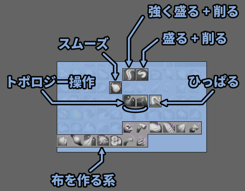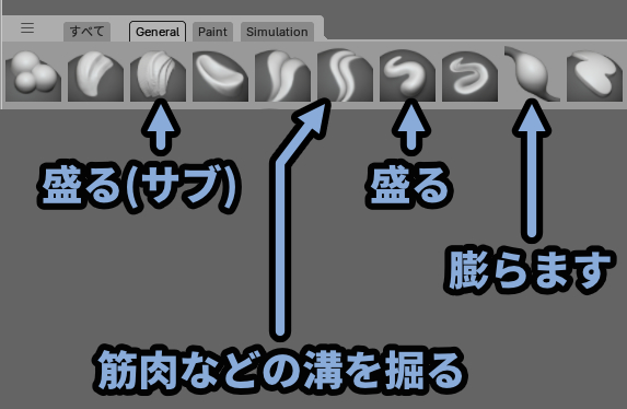 主要スカルプトブラシについて