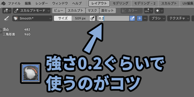 Blenderのスカルプトは基本的にプロポーショナル編集の上位互換と考えて大丈夫です。