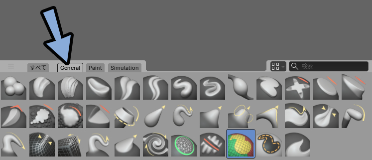 3Dビュー → スカルプト → スカルプト(グローバル)を確認。