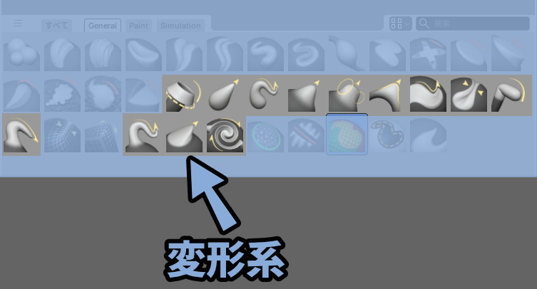 以上がつまんで変形する系のブラシです。