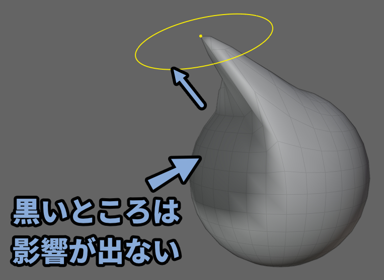 この黒いところはブラシによる変形が無効になります。
