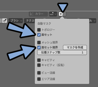 あとは自動マスクで「面セット」を有効化。