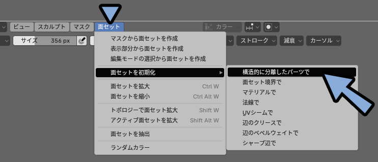 初期化は面セット → 面セットを初期化 → 「構造的に分離したパーツで」で行えます。