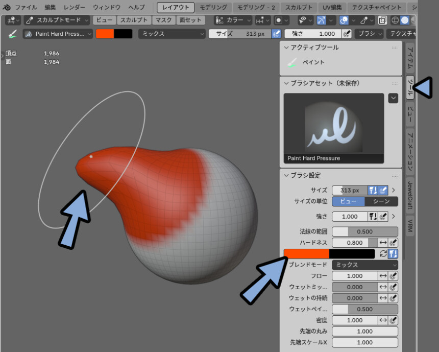 Ctrl+Tab → 2キーでスカルプトモード。