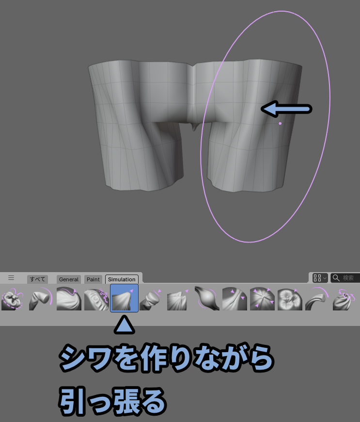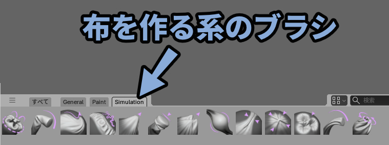 ・Simulation系のブラシを使えば布っぽい表現が作れる