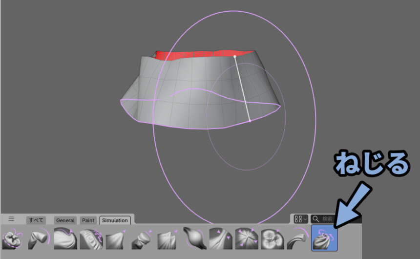 右側のねじり変形ブラシを選択。