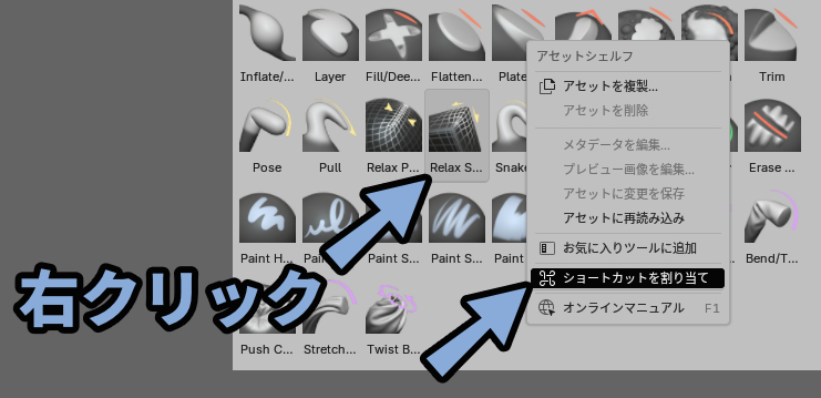 ブラシのショートカットキー確認と設定