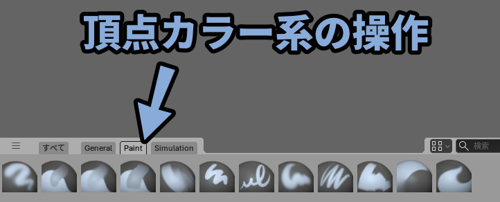 Paint系はモデルの頂点に色を入れる「頂点カラー」という操作に使います。