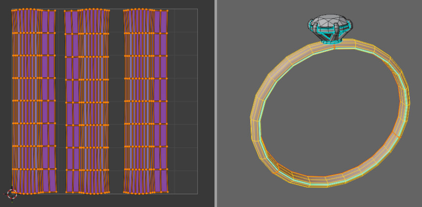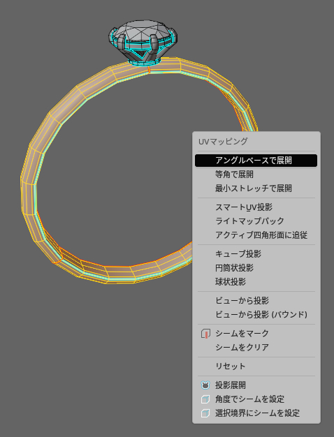 このような指輪の形状を作りUV展開しました。