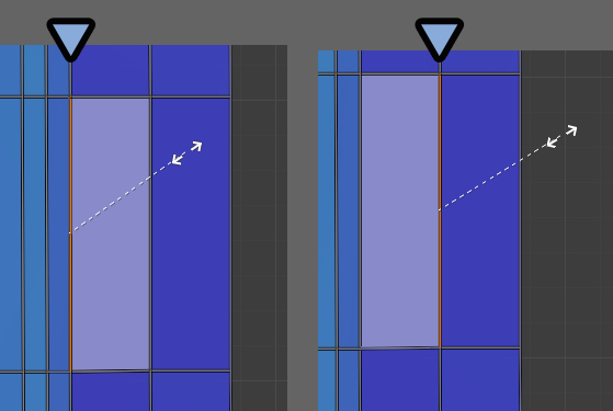 左側の辺を選択 → S → X → 0キーでまっすぐな縦棒にします。