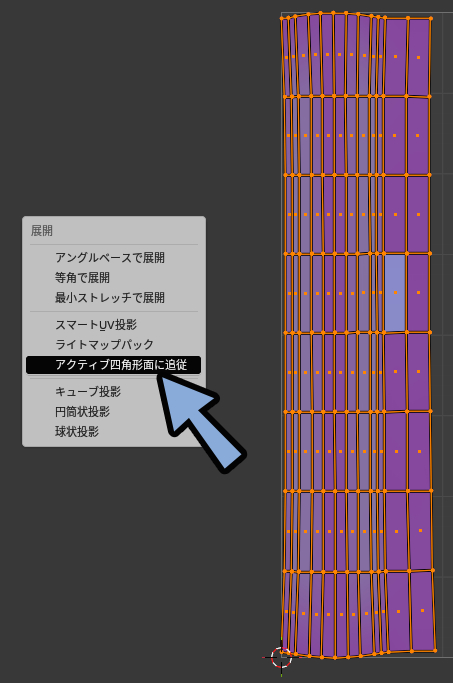 そこで、標準機能だけでUVを矩形状にする方法が必要になります。