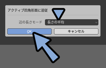 ・Uキー → アクティブ四角形面に追従 → 長さの平均で矩形状にできる