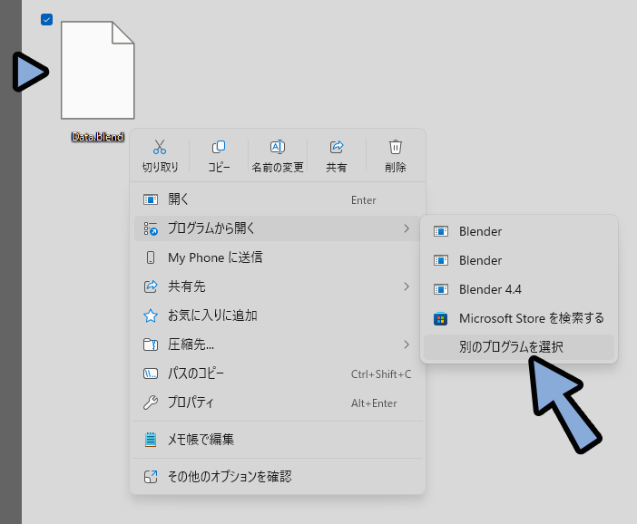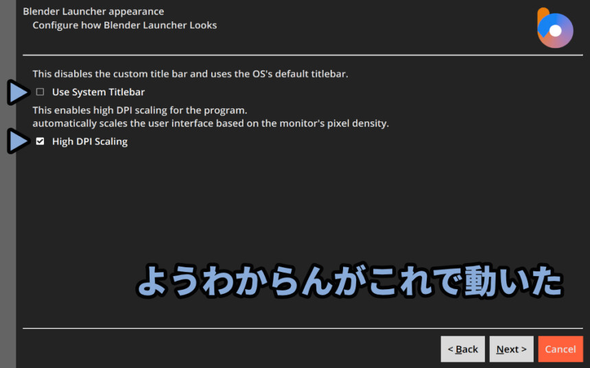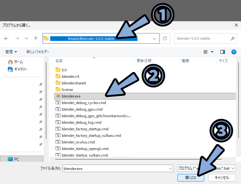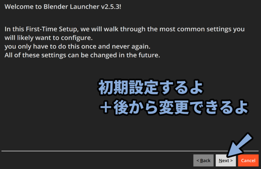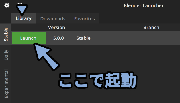 後でBlender Launcherを経由せずBlenderを立ち上げるように設定します。