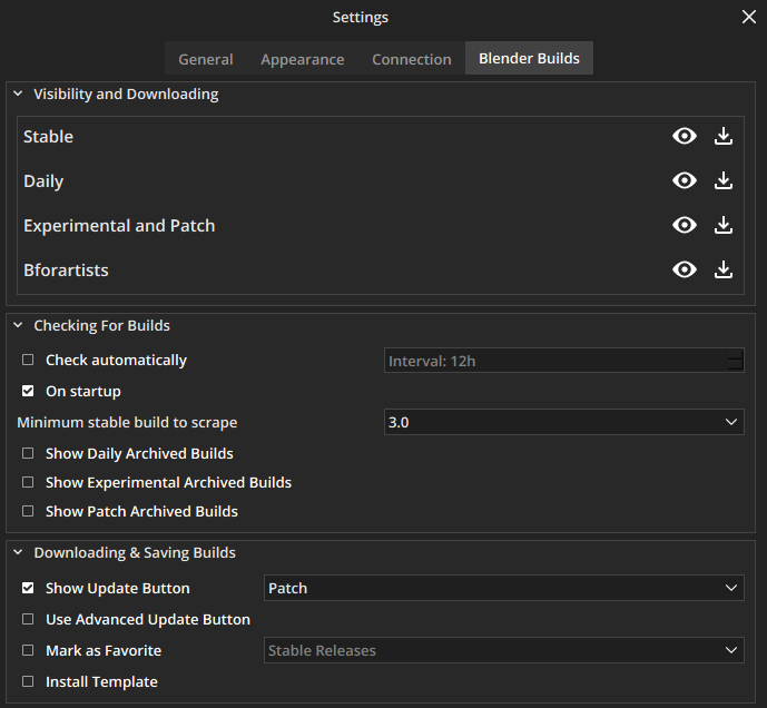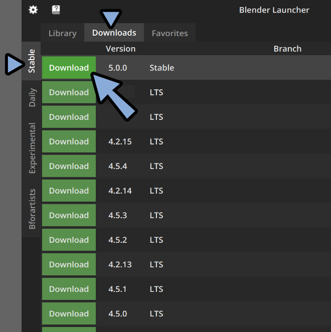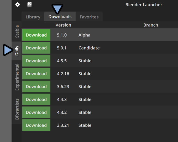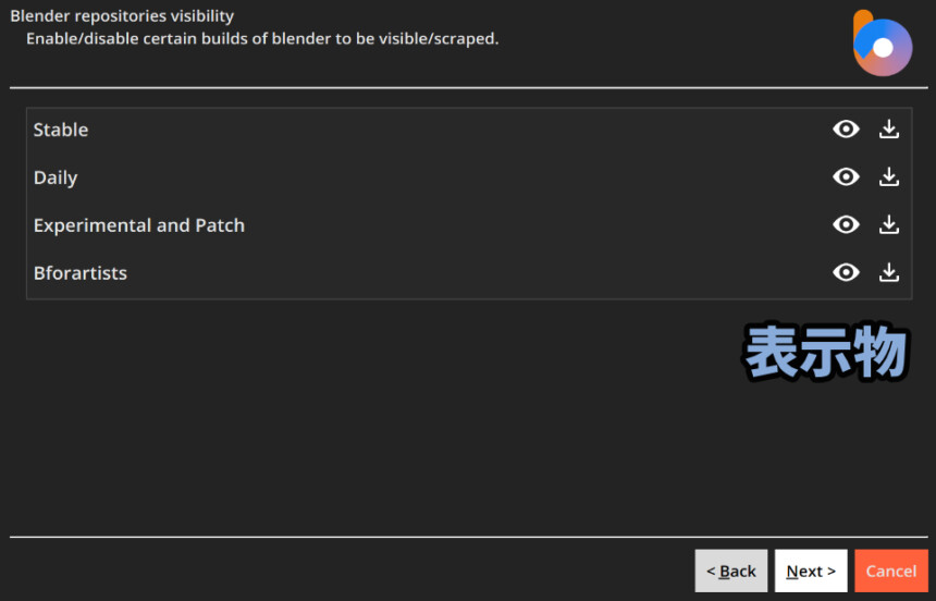 次はBlender Launcherで表示するBlenderの種類を選びます。