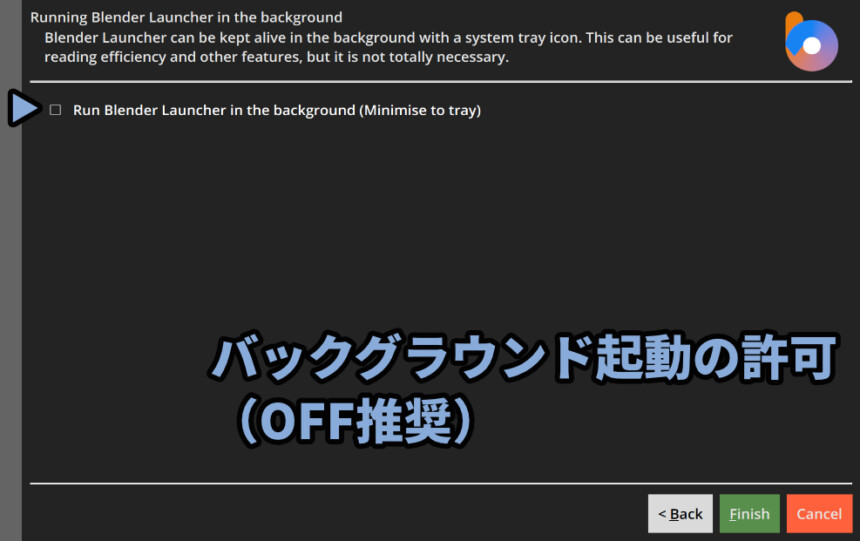 これを使えばBlender Launcherのバックグラウンド起動は不要です。