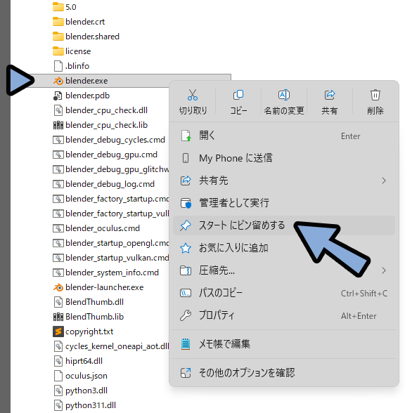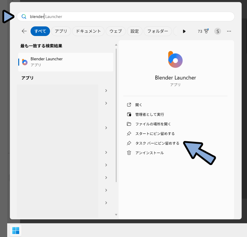 Blender Launcherを「タスクバー」や「スタート」にピン留めしておきます。