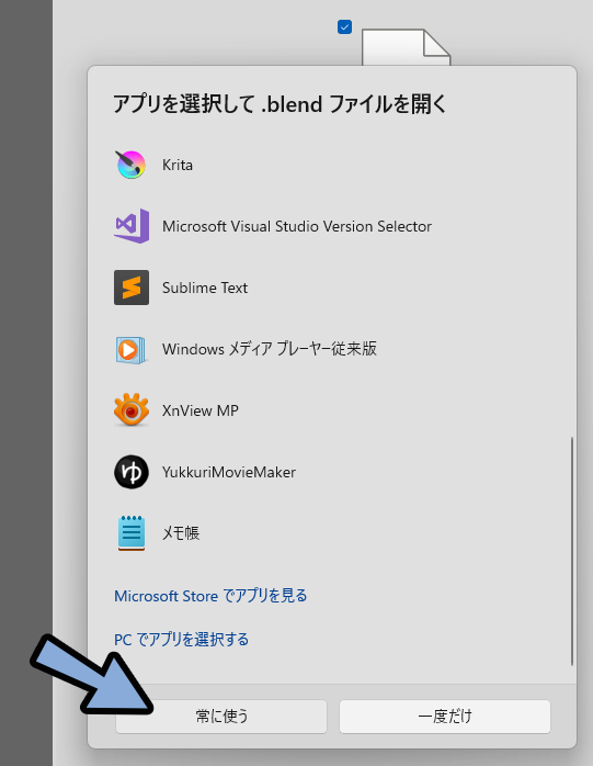プログラムから開く → 「別のプログラムを選択」をクリック。