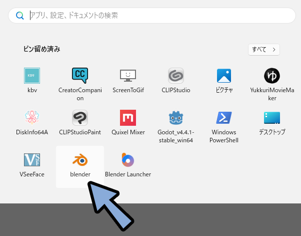 これでWindowsキーを押すとBlenderを直接立ち上げれます。