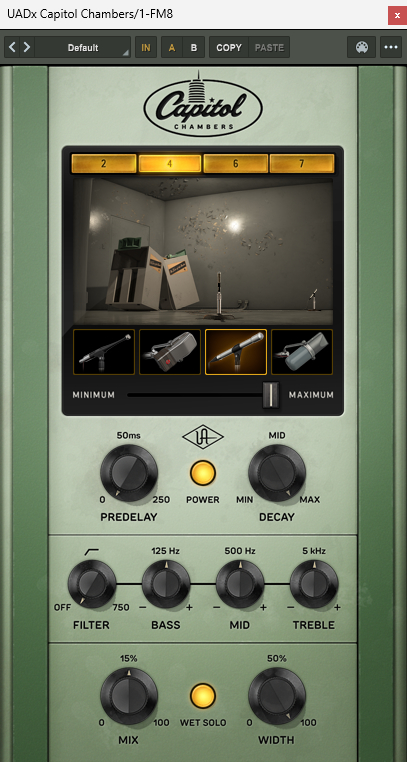 これはUniversal Audioが出している「反響室を再現したリバーブ」のプラグインです。