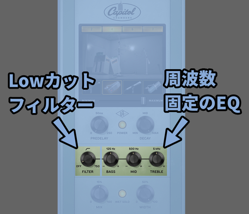 ・リバーブとしての機能は少なめだがEQやローパスフィルタが付属