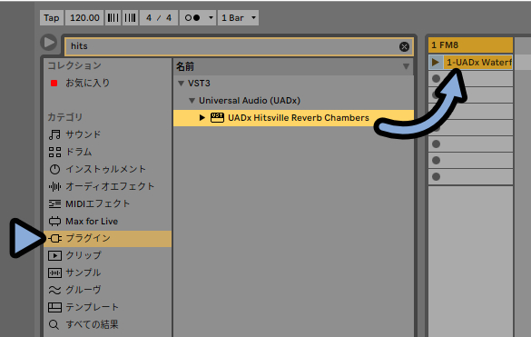 プラグインを探してトラックにドラッグ&ドロップ。