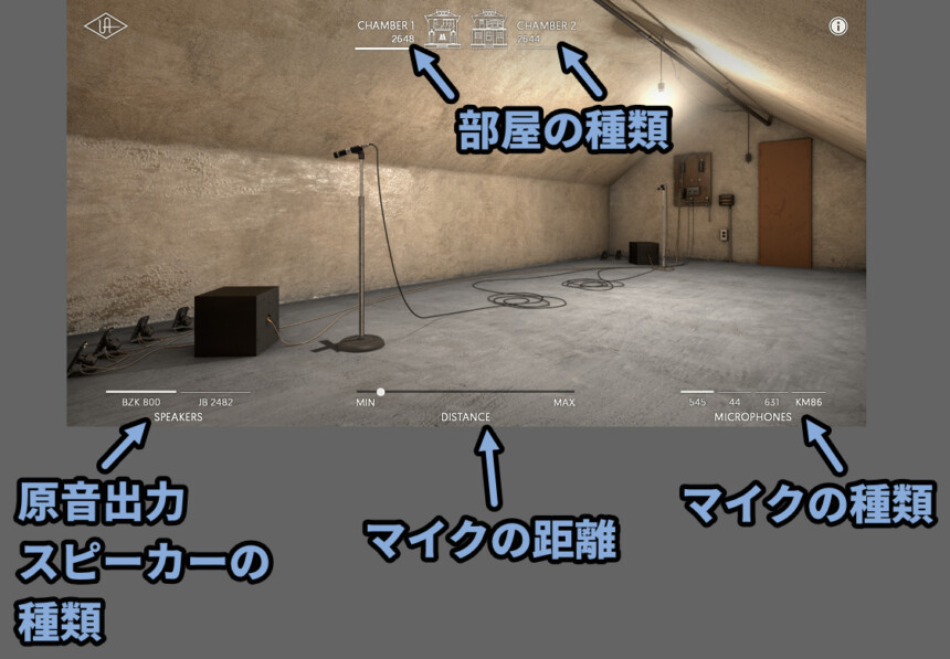 反響室リバーブとして「部屋」と「マイク」と「スピーカー」の設定を変えれます。