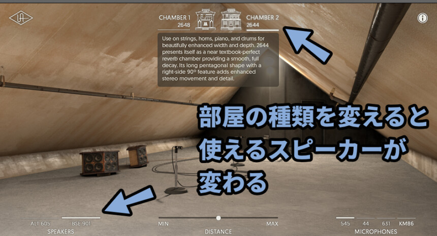 ・反響室の種類は画面上部で「2648」と「2644」の2つに変えれる