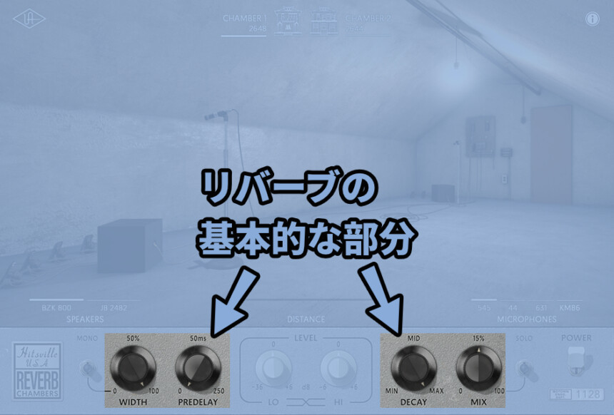 リバーブとしての基本機能は下図の場所にしかありません。