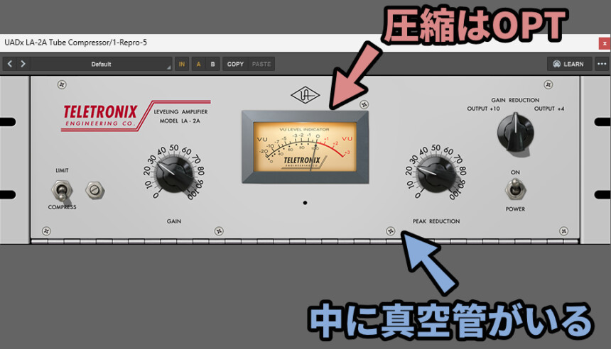 そして真空管を使ったOPTコンプが「LA-2A」になります。