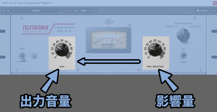 PEAK REDUCTIONが「Threshold(Input Gain)」に相当。
