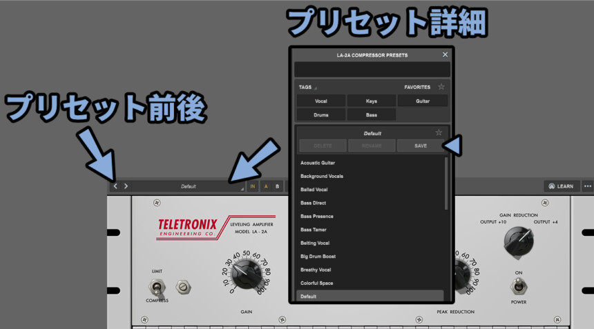今回はUniversal Audioの「Teletronix LA-2A Tube Compressor」の使い方を紹介します。