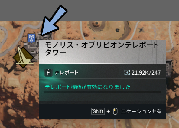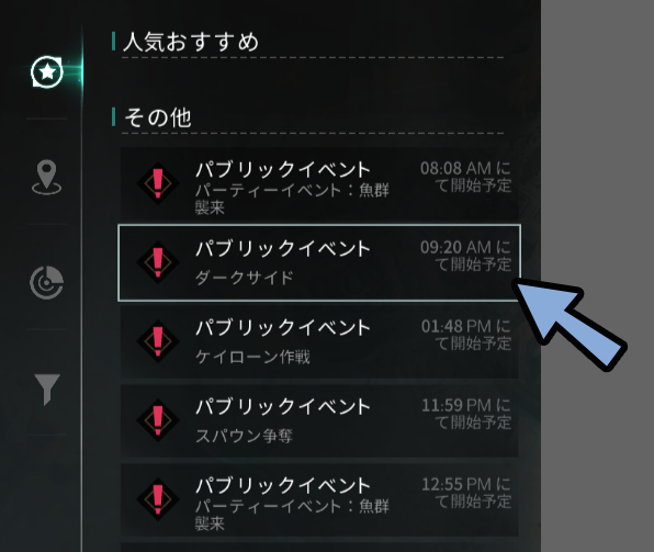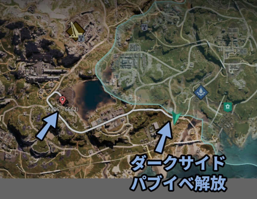 そしてステージ1からいけるパブリックイベント「ダークサイド」の場所をマップ開放します。