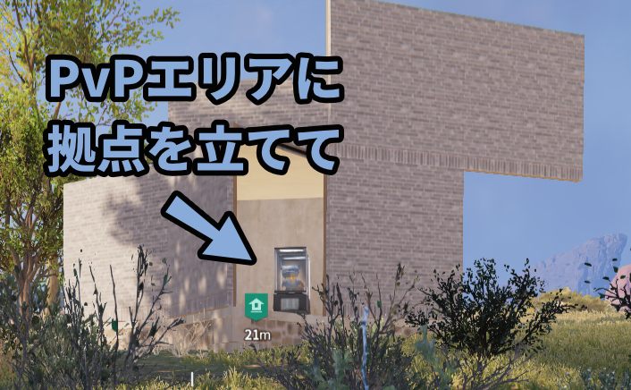 パブリックイベントとデビ争奪戦に勝ったら安全エリアに立てた防衛用拠点をPvPエリアに移植。