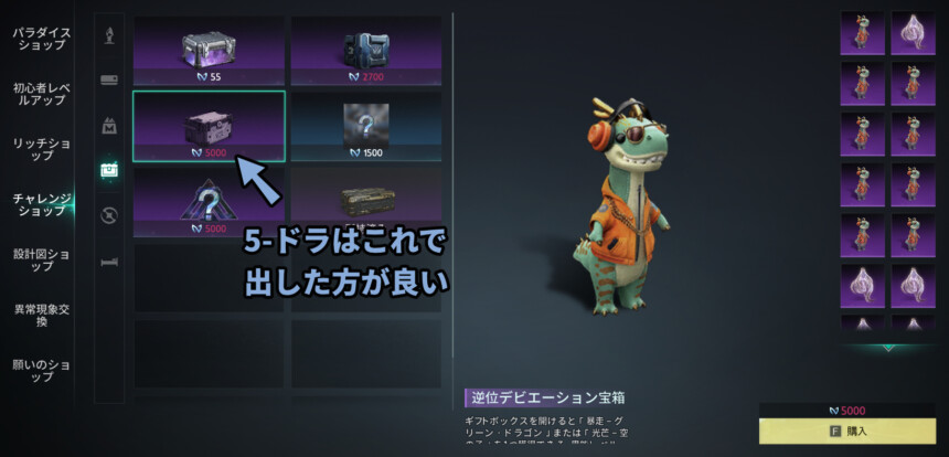 5-ドラが欲しいなら「逆位デビエーション宝箱」を回した方が良いです。