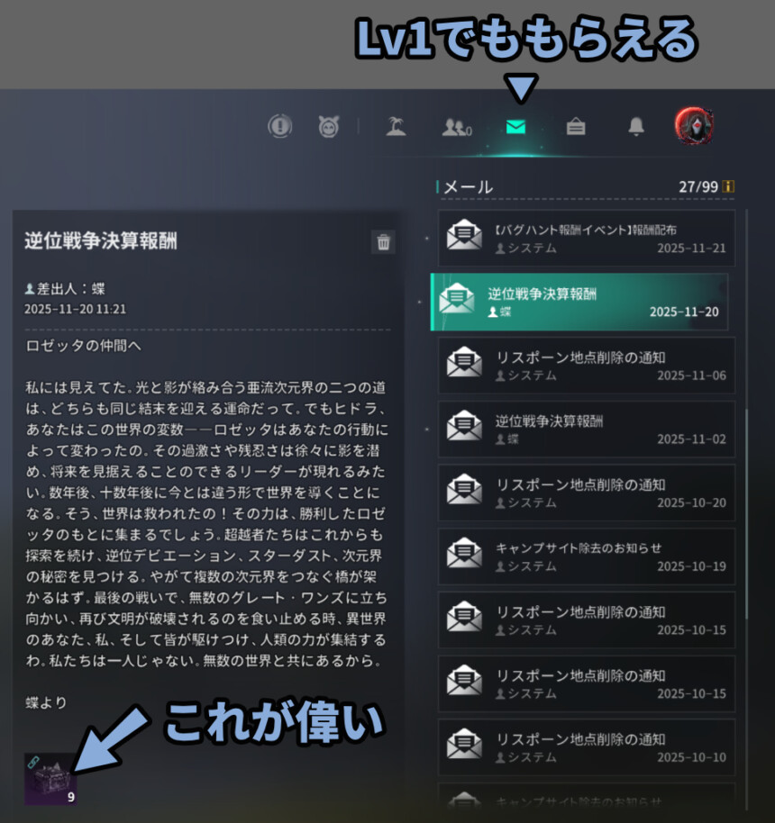 Lv1でもサーバーに入って最後まで居ればもらえます。