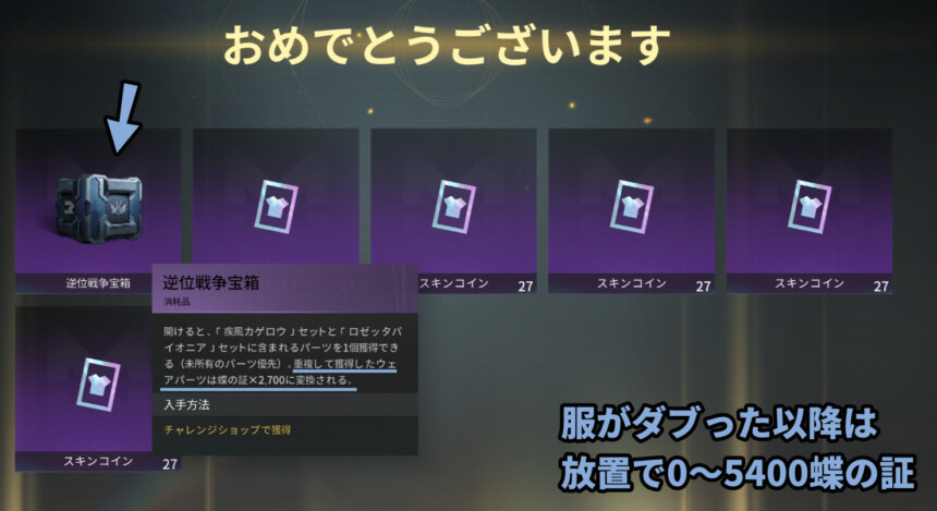 この箱を開けると一定の確率で「逆位戦争宝箱」がもらえます。