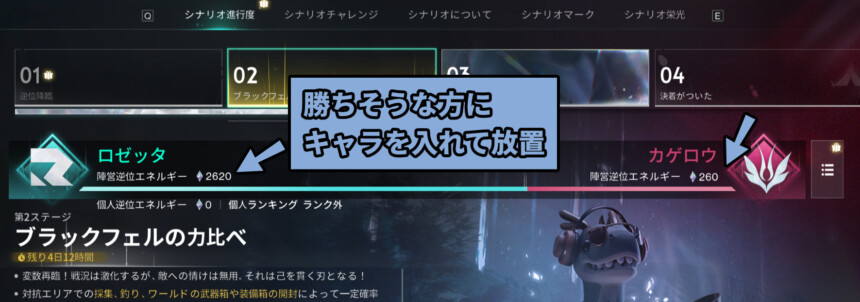 ・キャラを入れれる限界日の7日目まで待つ(ステージ2で残り5日の段階)