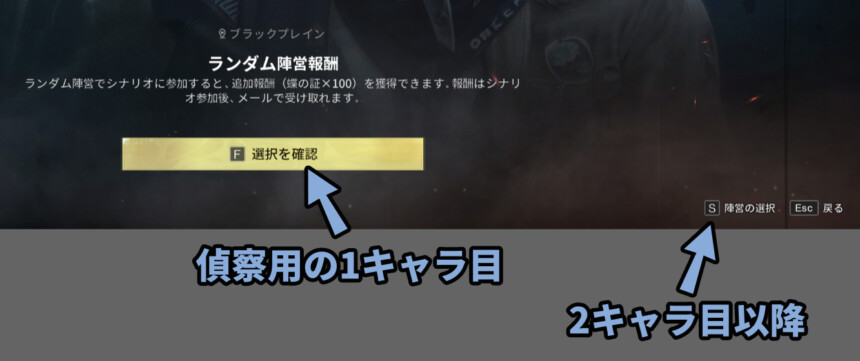 偵察用の1キャラ目は「ランダム陣営」で入れます。