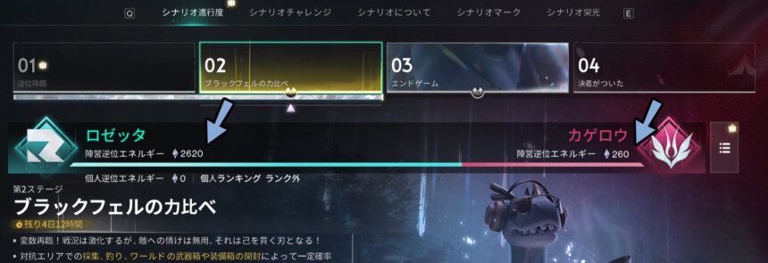 ここで敵陣営と戦いながらクリア後に出る逆位デビエーションを “味方と“ 取り合います。