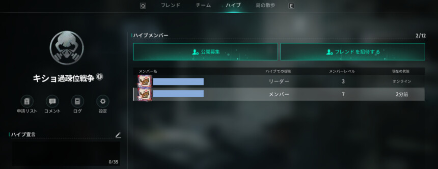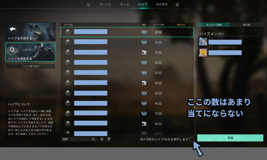 あとはハイブ → 加入可能なハイブのみ表示を解除でもある程度見れますが…