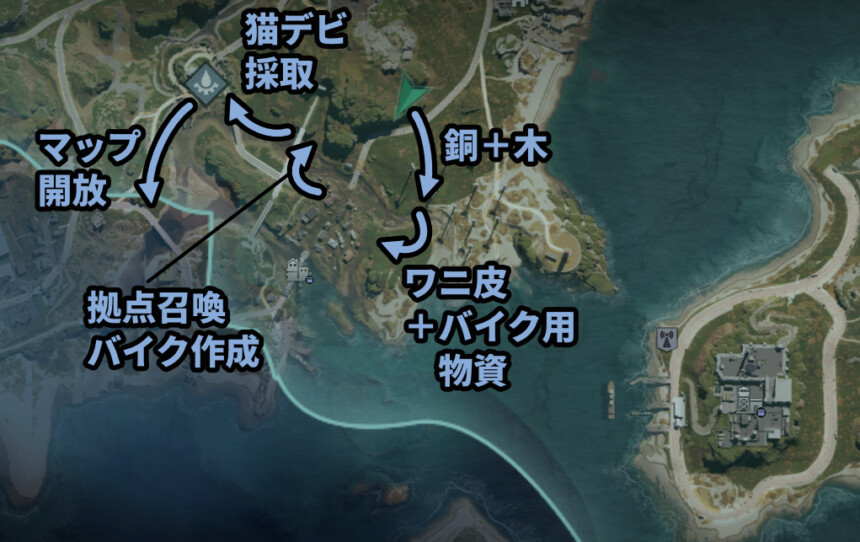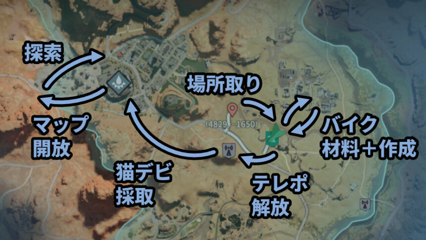 すると素早くバイクを完成させていろんな場所に行けるようになります。