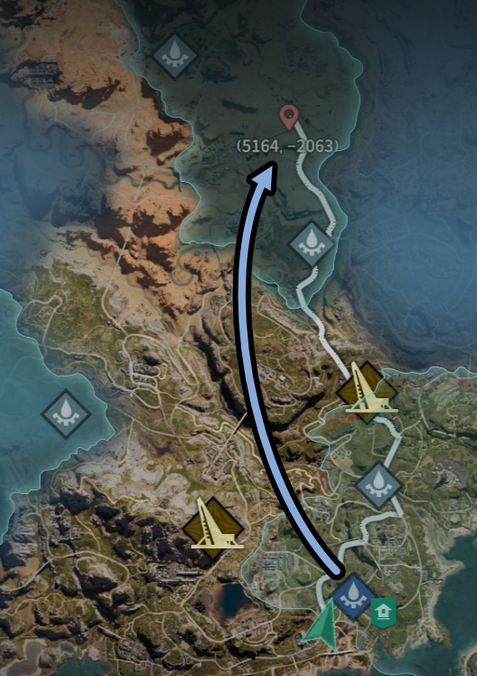 2回目以降の方は「猟犬島」で速攻テレポートを開放 → 原油ポイントに行きましょう。