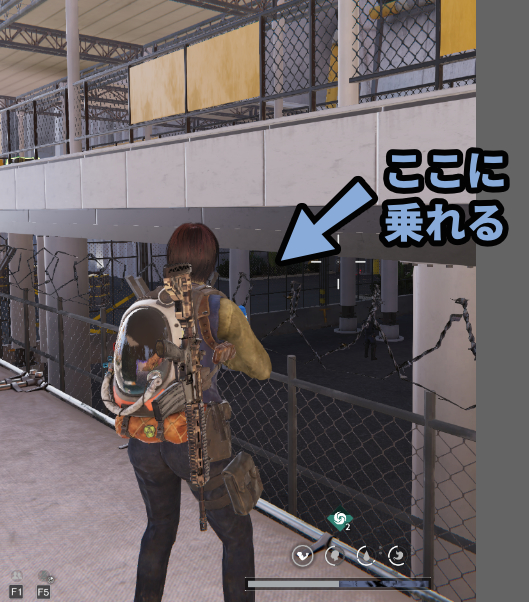 ↓行くときはこの有刺鉄線に乗って上ってください。
